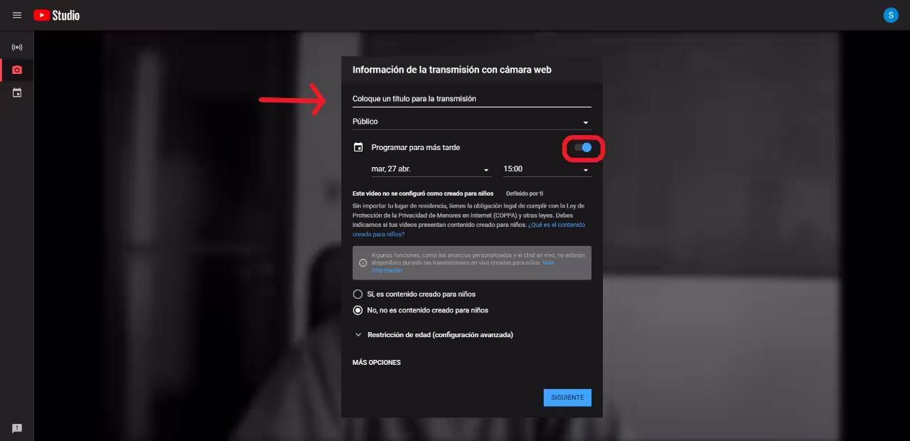 - - Requiere aprender a usar la interfaz de YouTube Studio para configurar las transmisiones.